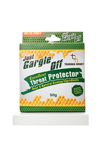 Tharaka Honey Just Gargle Off product is an Excellent Apitherapy for the Throat. It is a carefully blended formula of 100% wholesome ALL-NATURAL ingredients and GLUTEN-FREE. It has propolis, Himalayan salt, and over 5 other natural healing ingredients from medicinal plants. Furthermore, it is a Natural cold remedy for sore throat, scratchy, irritated, dry throat, laryngitis, voice remedy, LPR, oral thrush, postnasal drip, and sinus congestion. It does